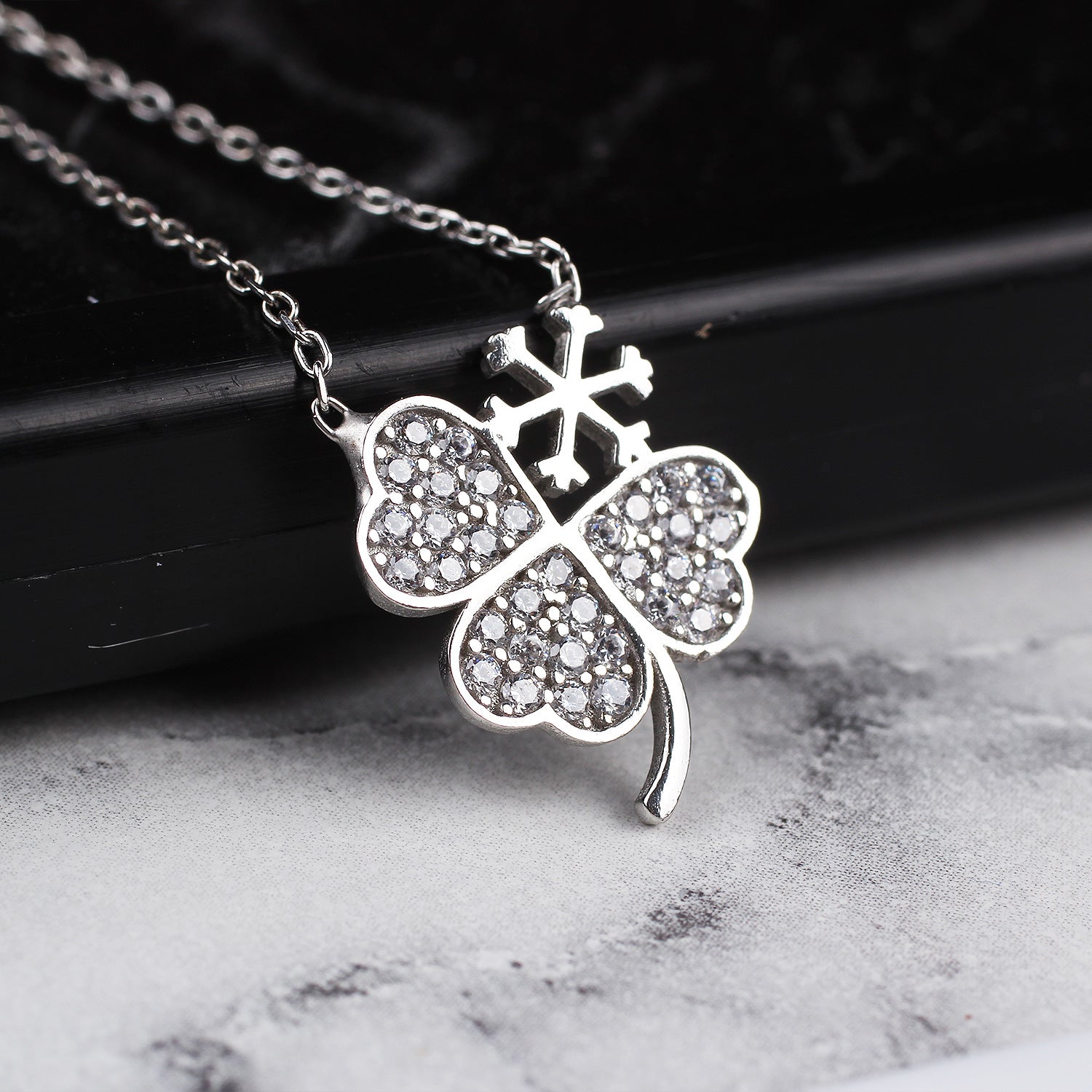 Glorria Silver Kar Taneli Clover Necklace - DT0668