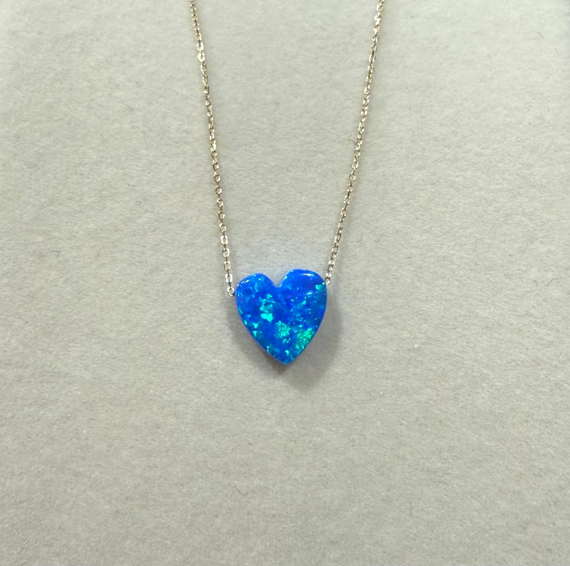 Glorria 14k Solid Gold OPAL BLUE HEART NECKLACE - DU0055