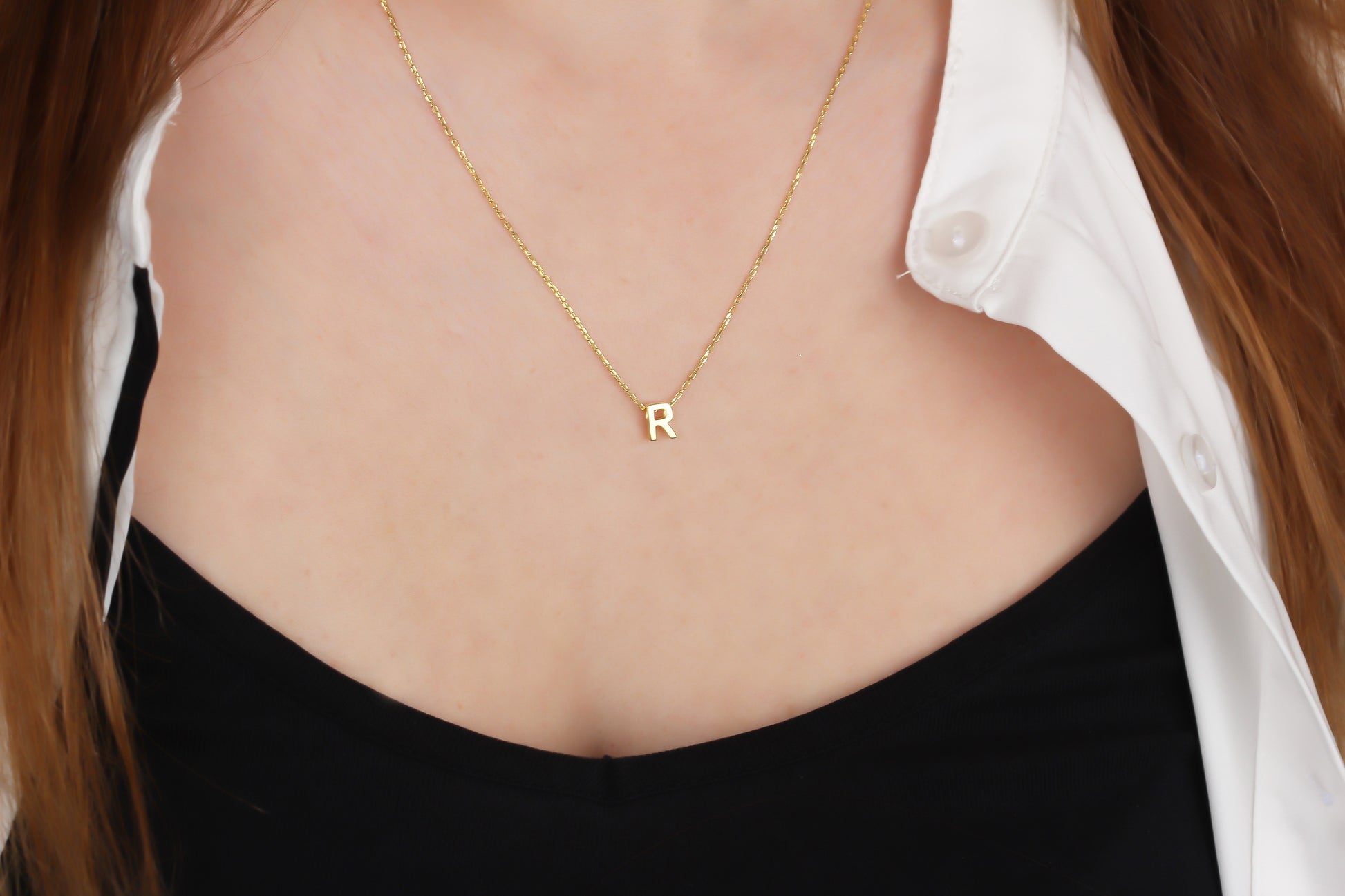Glorria 925k Sterling Silver 3D Minimalist Letter R Necklace - GLGEG0630R