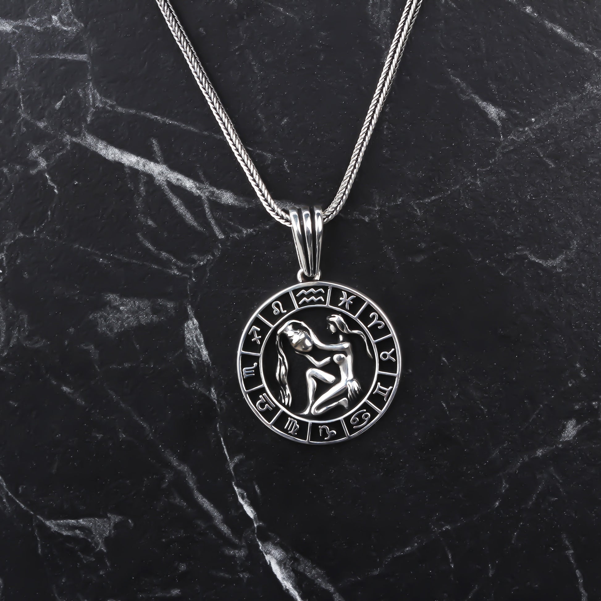 Glorria 925k Sterling Silver Men Aquarius Sign Pendant Necklace - GLGEK0020H