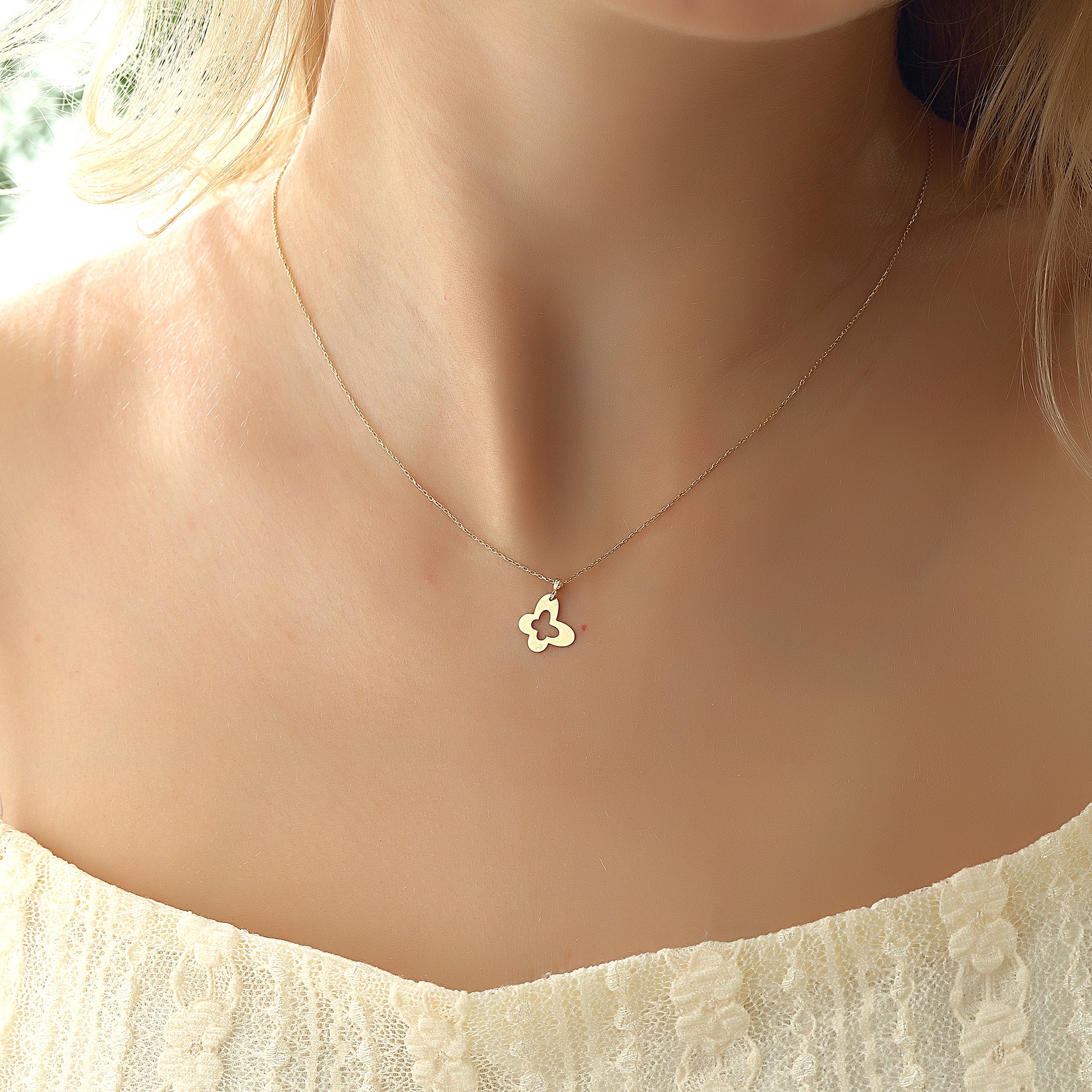 Glorria 14k Solid Gold Butterfly Necklace - SV0444